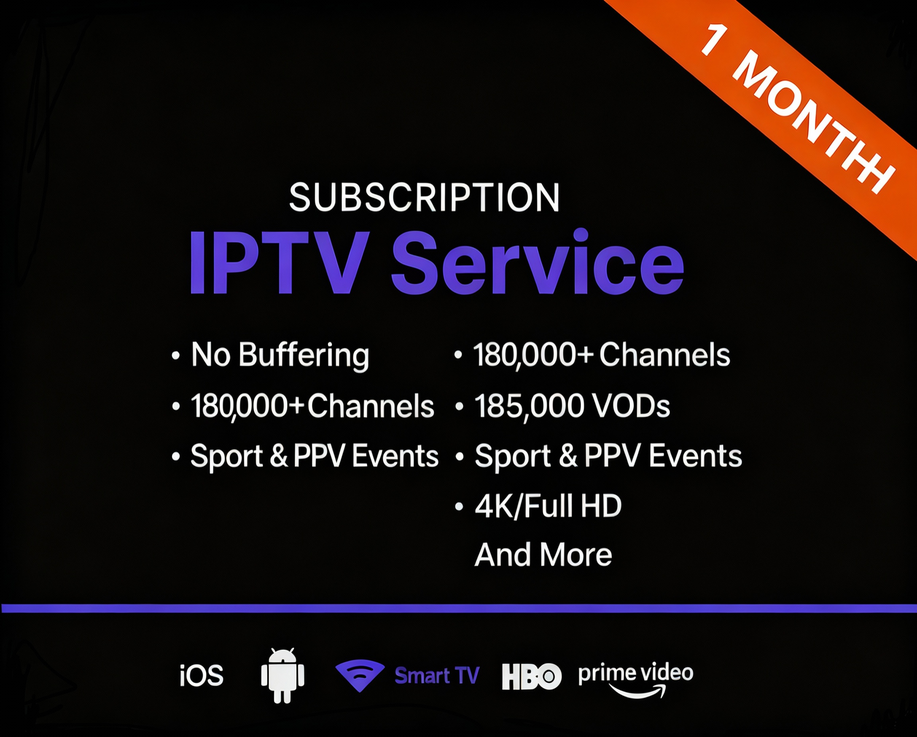 1 Month Subscription IPTV Premium Service 180.000 IPTV channels and more than 85000 movies and series with 4k FHD, IPTV quality 100% Stable.